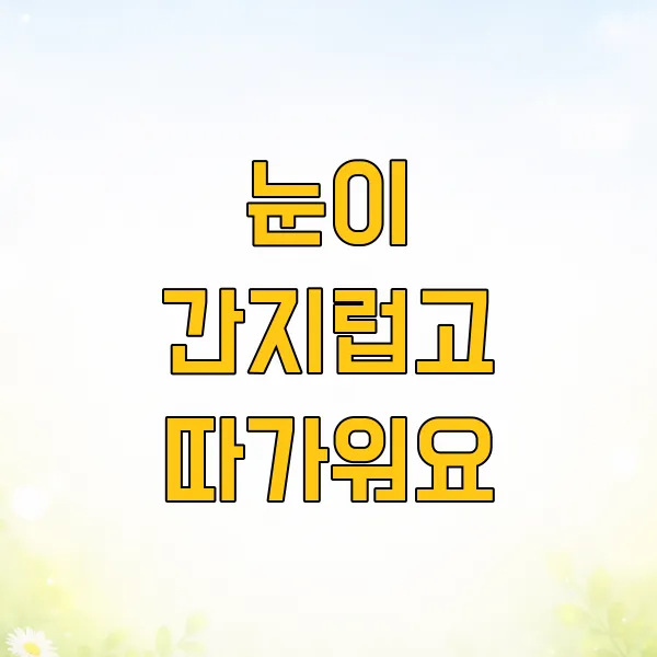 이물감이 느껴진다고 해서 눈을 심하게 비비는 것은 절대 금물입니다. 오히려 눈에 손상을 줄 수 있으므로, 차가운 식염수나 인공눈물로 눈을 헹궈주거나 안과에서 상담받는 것이 좋습니다.