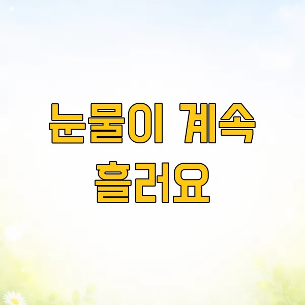 이러한 눈물은 맑은 경우가 많으며, 눈곱과 함께 섞여 흘러나올 수도 있습니다. 눈물이 계속 흘러내려 눈 주위 피부가 짓무르거나 자극받기도 해요.